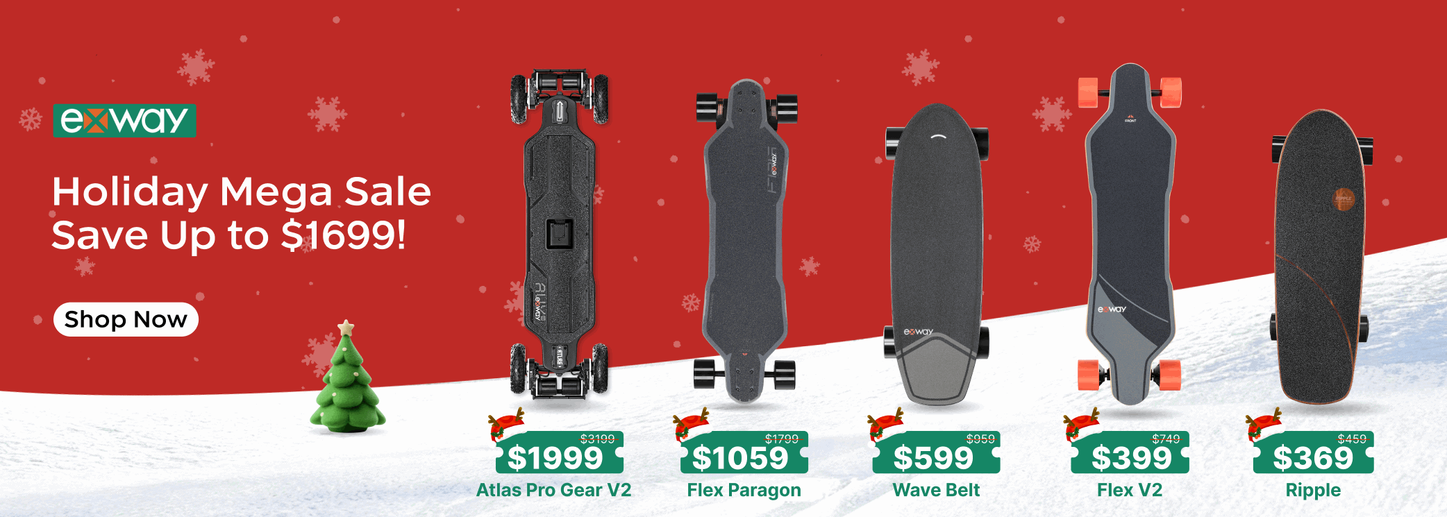 The ultimate Christmas gift guide for electric skateboard lovers! Discover how Exway's Atlas Pro/V2 (all-terrain), Flex Pro V3 (urban comfort), and Wave (travel-ready) models make perfect festive p...