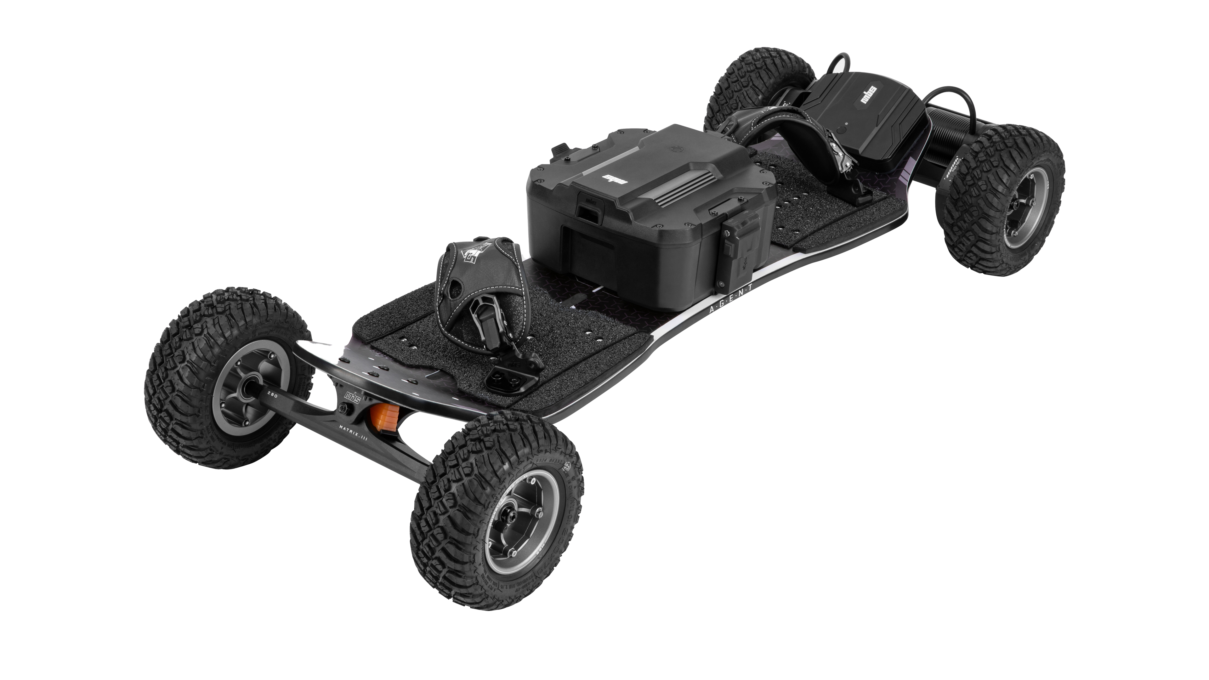 Top speed: 50 km/h, range: 55 km. Featuring 72 color lighting and a color screen remote, the Flex Paragon is built for adventure, both on and off-road. There’s no better streetboard.