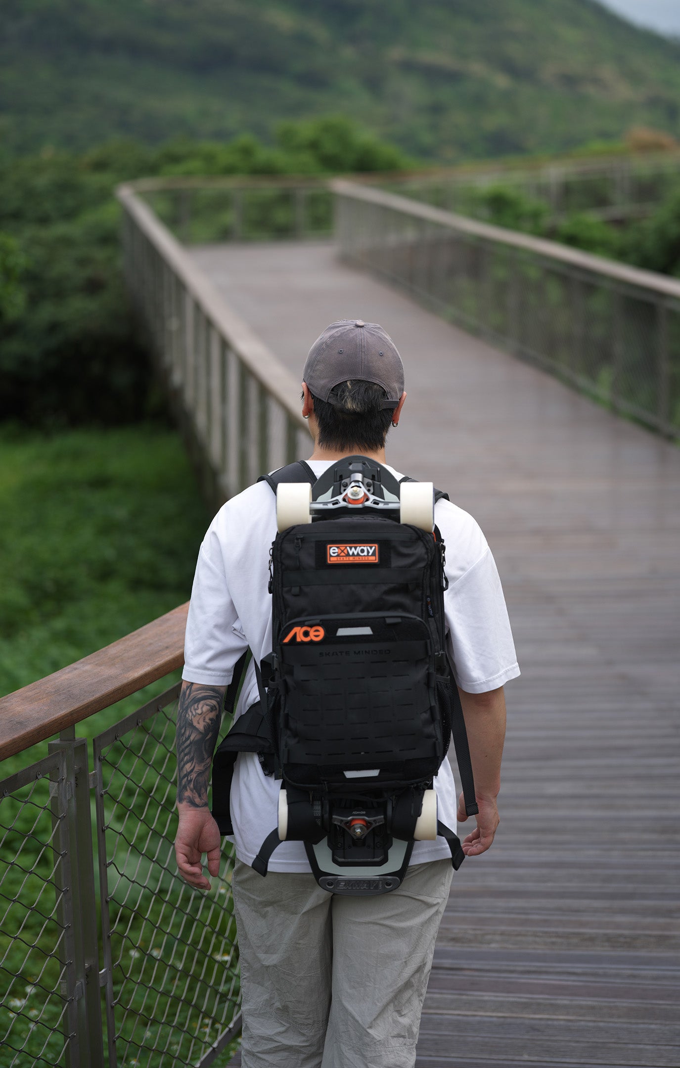 Weighing just 1.1kg, the Exway ACE 2nd Edition is a lightweight, all-purpose backpack designed for commuting and travel. It’s built to carry your skateboard and essentials with ease, offering versatile customization for any adventure.