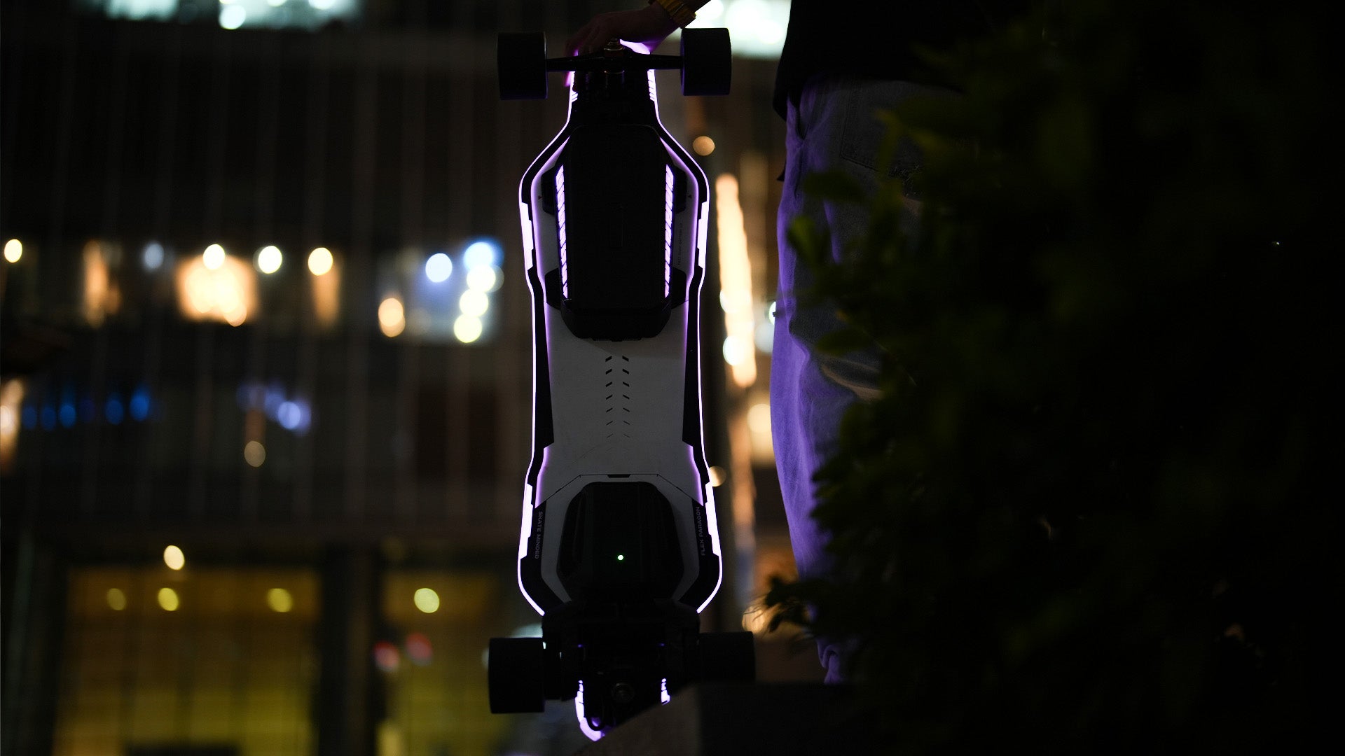 Top speed: 50 km/h, range: 55 km. Featuring 72 color lighting and a color screen remote, the Flex Paragon is built for adventure, both on and off-road. There’s no better streetboard.