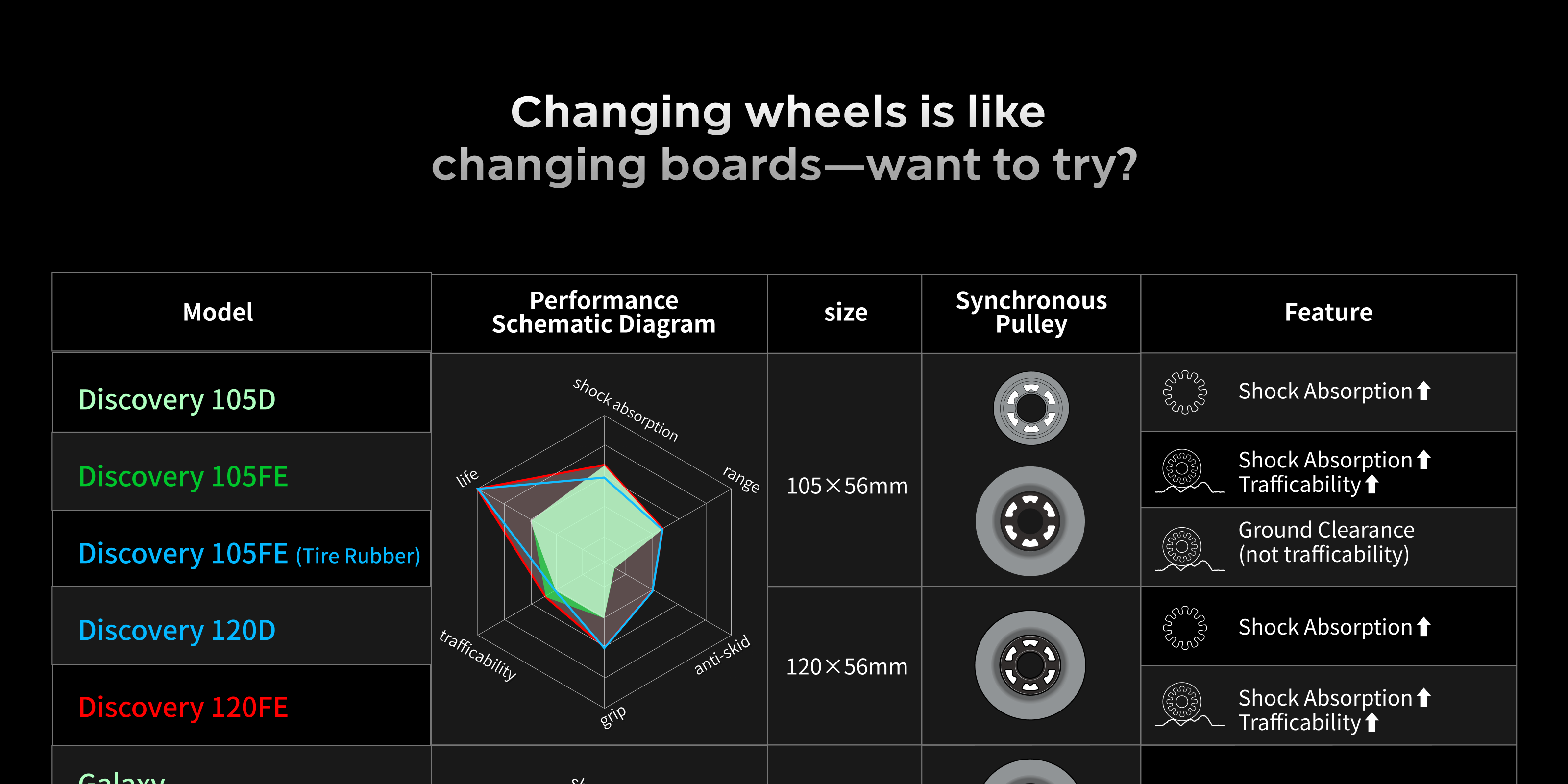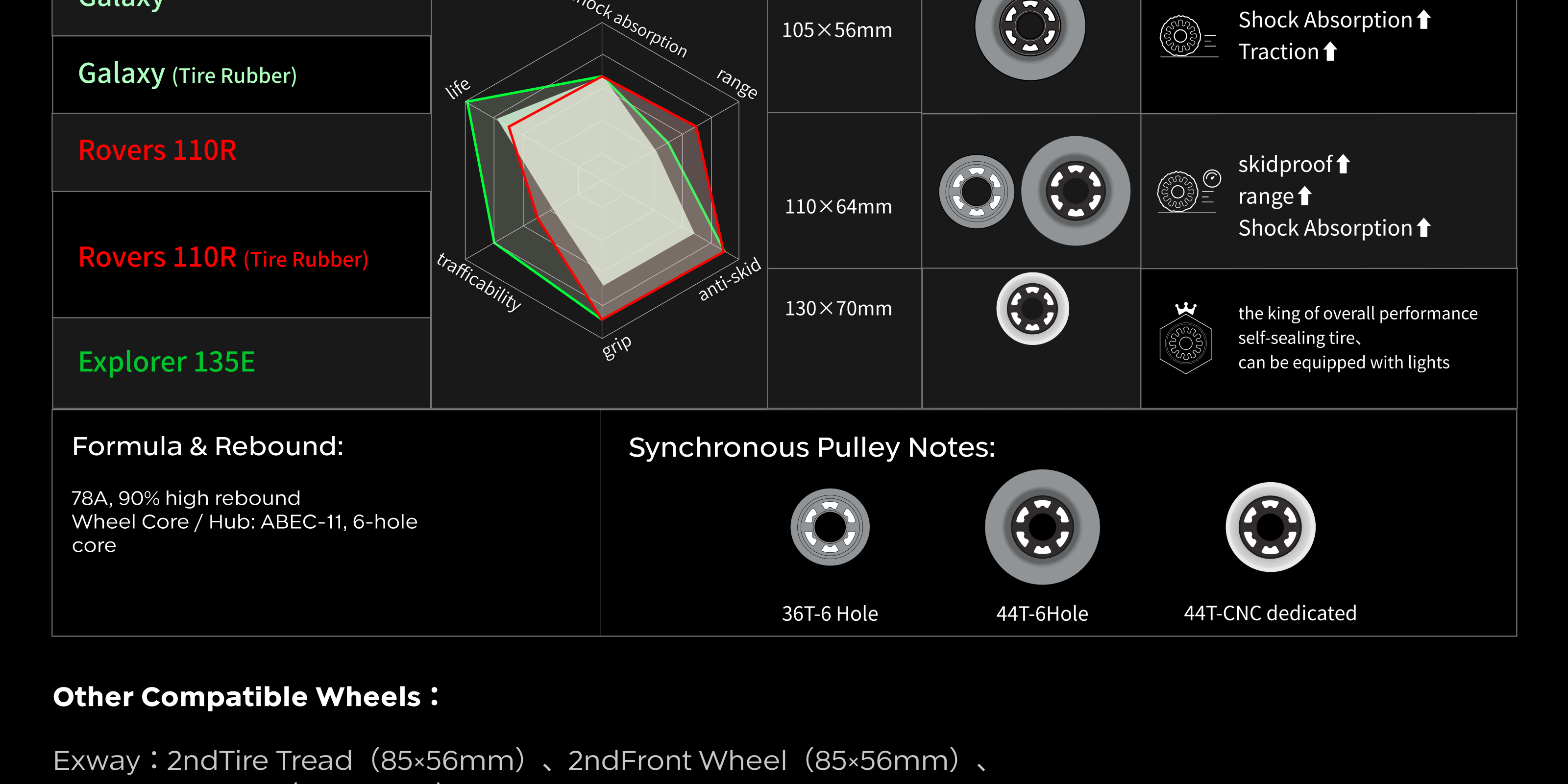 Thanks to the ultra compact gear drive design and a complete pulley accessory system, this setup supports a wide range of wheels, allowing riders to experiment with different options. Compatible wheel sizes: 75–135 mm (including glow wheels, Cloudwheels, and all-season wheels).