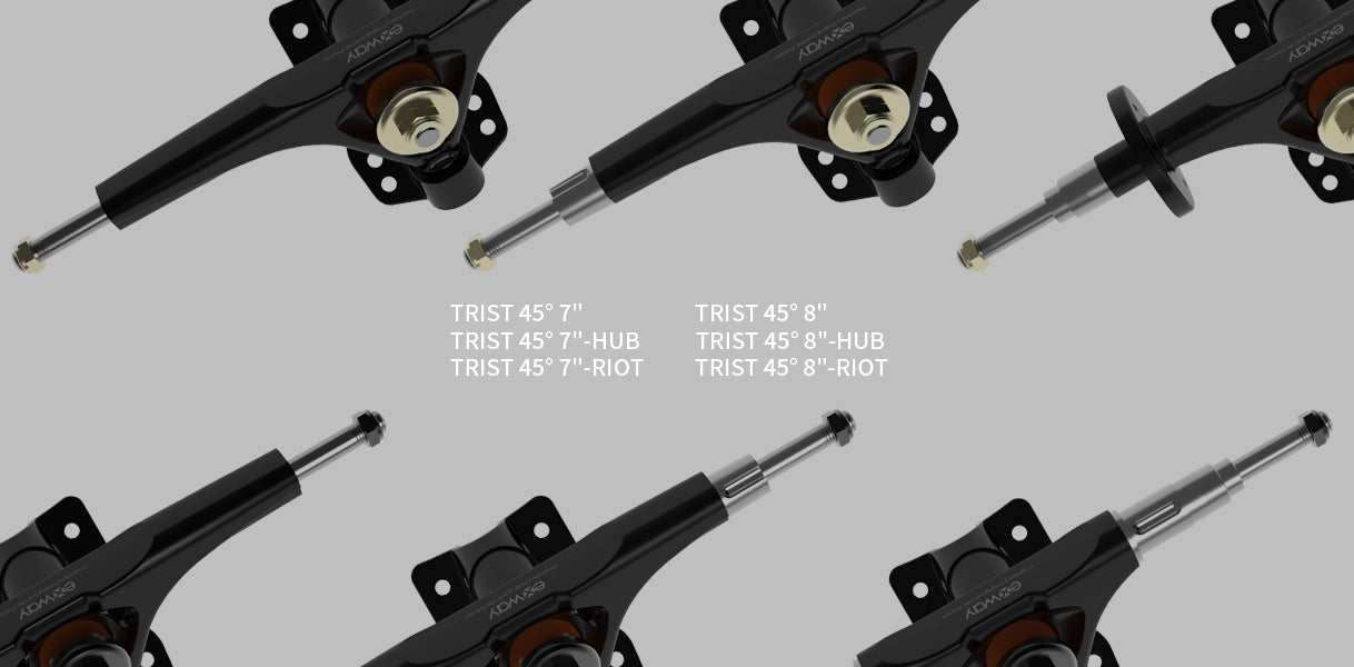 The all-new Trist truck utilizes special forging technics and CNC milling processes developed by the Exway Engineering Team for a much higher strength compared with traditional die-casting and gravity cast trucks. It comes with a lifetime warranty against failure under normal usage.