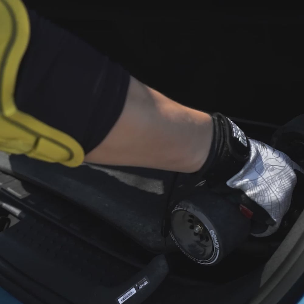 Despite the limited space within the deck, we increased the battery capacity by a further 20%, enabling up 30 kilometers or 18.6 miles of range. The board uses an integrated deck design, the components are inside the deck and the deck also uses our shock absorbing griptape. The ride therefore is extremely comfortable even over bad terrain and road surfaces.