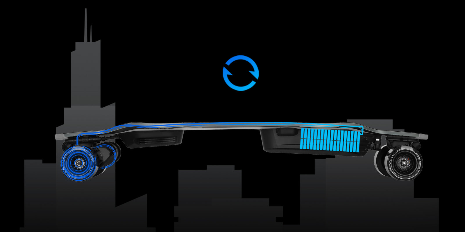 During skating, when braking, if the braking force is sufficient, it automatically converts kinetic energy into electrical energy for storage.