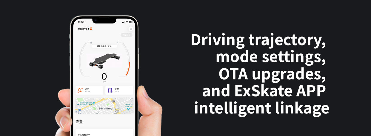 Flex 2 Pro is factory set to 20KM/H. When the rider reaches 10KM, the 1.2.3.4.Turbo gears are automatically unlocked, Can replace 80mm-120mm skateboard wheels. The maximum speed in Turbo mode can reach 50KM/H. If you want to ride in an area where stepping on the accelerator is prohibited, 2 Pro can also be driven without turning on the power. Exwayboard meets the IP55 waterproof standard. IP55 means that your skateboard can withstand water from the road, and splashes or raindrops on wet roads will not cause damage to it. Your skateboard is not suitable for long-term rain, immersion in water or pressurized spray. Do not use a high-pressure cleaner or sprayer to clean the skateboard.