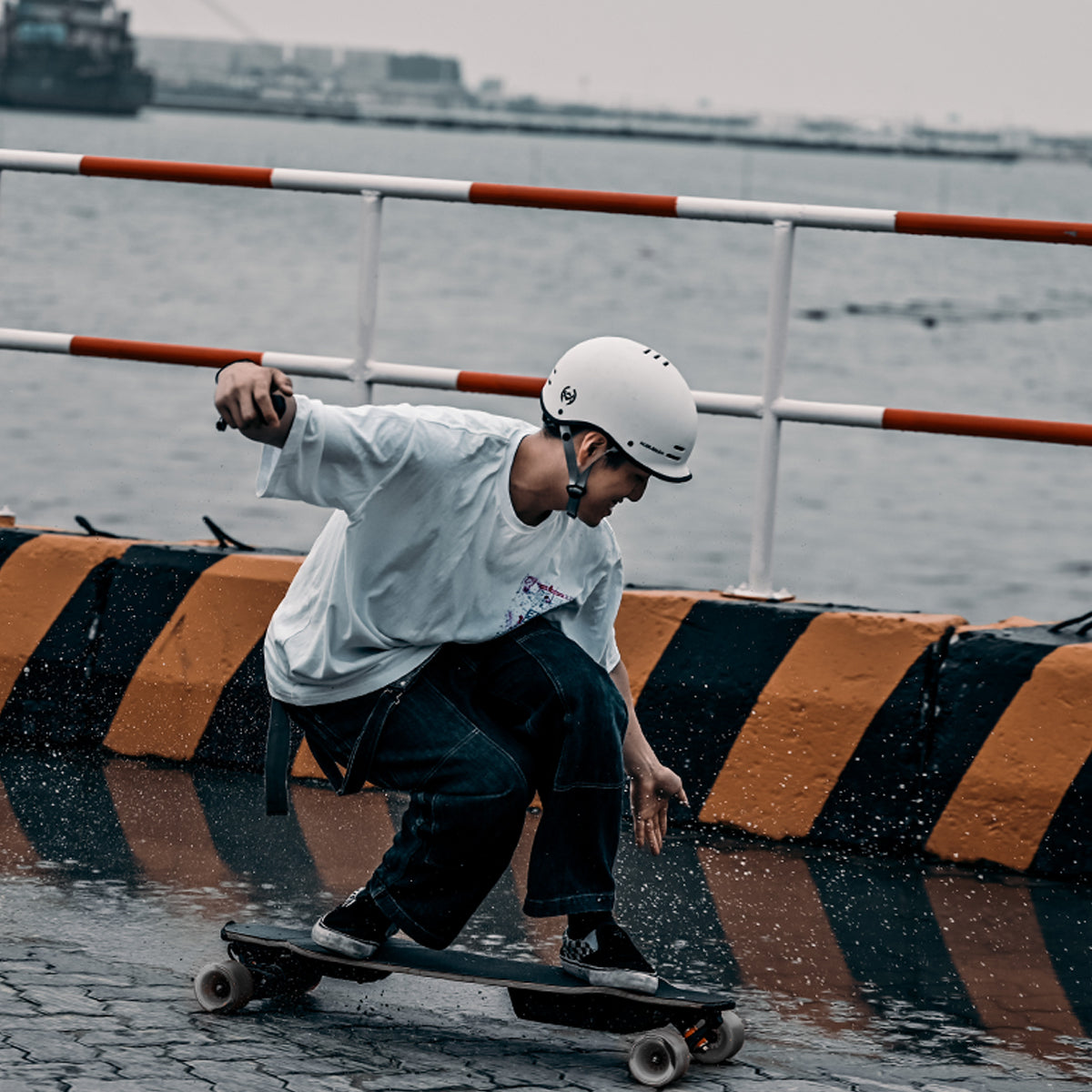The water resistance of the skateboard is IP55, which is resistant to minor splashes and dust under normal conditions, but if you ride in a puddle or where the water level is high, or even immerse your skateboard in water, water is likely to enter the electrical parts and damage the part.